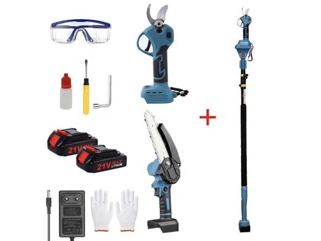 AKU sada: pilka + nůžky + teleskopická tyč, 2x baterie