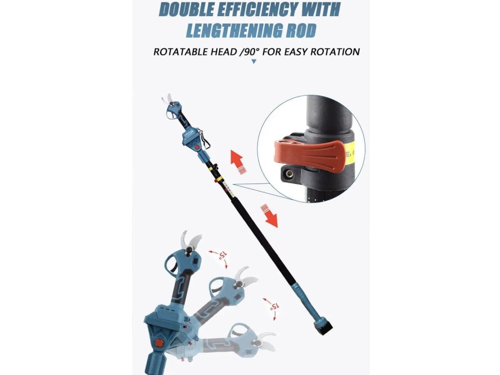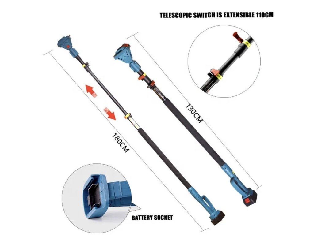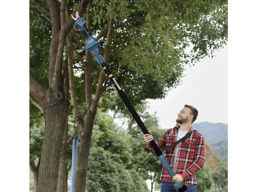 S touto praktickou sadou aku zahradního nářadí zvládnete řezání větví a keřů i ve výškách bez nutnosti použití žebříku. Díky teleskopické tyči pohodlně dosáhnete na vysoké větve přímo ze země, což zvyšuje bezpečnost i efektivitu práce.