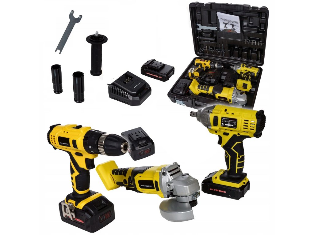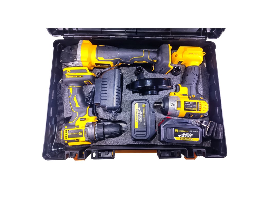Výkonná a univerzální sada aku nářadí pro široké spektrum domácích i profesionálních prací. Obsahuje aku vrtačku, rázový utahovák, úhlovou brusku, dvě výkonné 21V baterie, nabíječku a praktický přepravní kufr. Ideální pro každodenní hobby použití i dílenské práce.