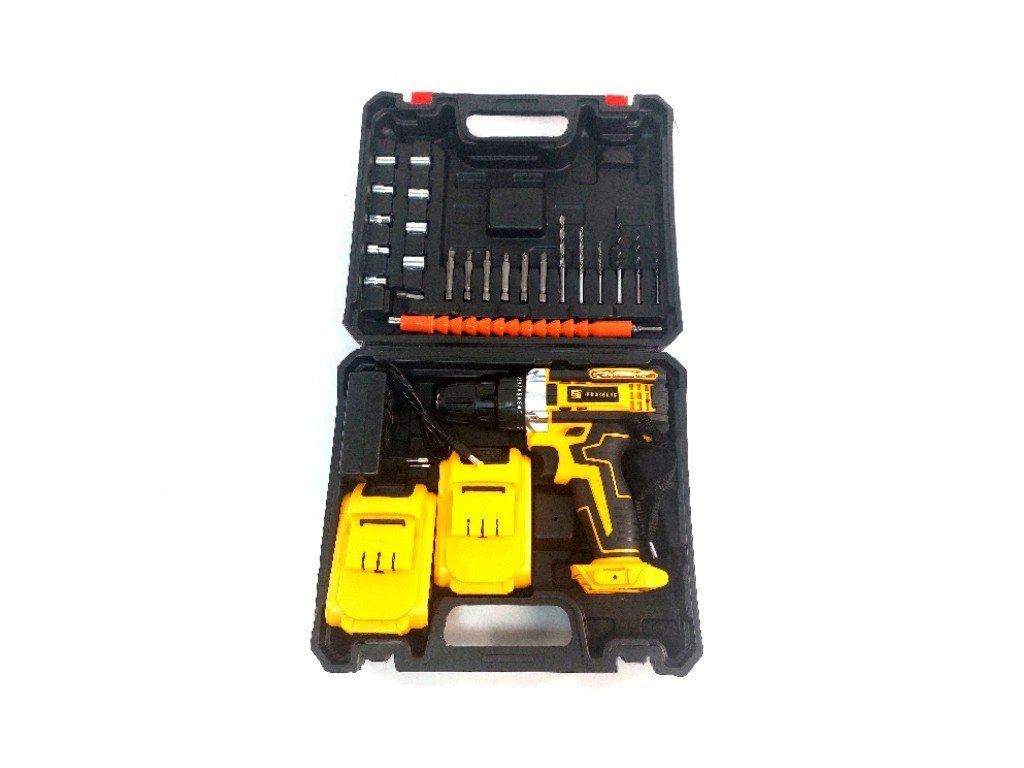 Aku vrtací šroubovák 21V se 2 bateriemi, příslušenstvím a kufrem