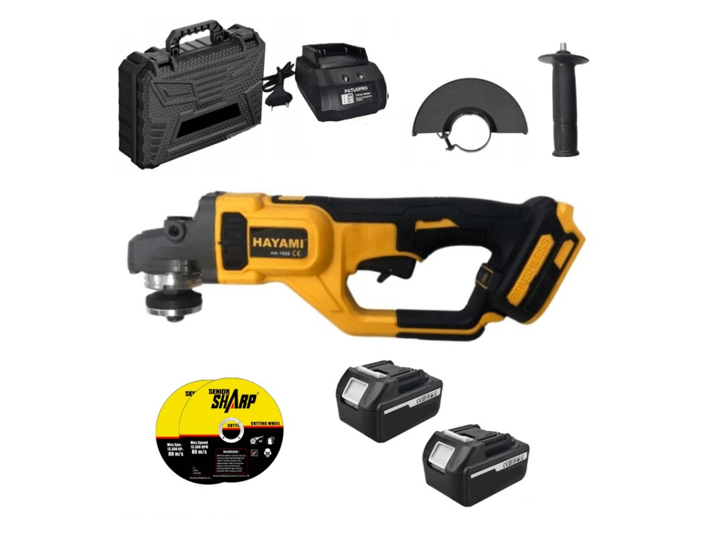 Akumulátorová úhlová bruska HAYAMI + 2x baterie + příslušenství