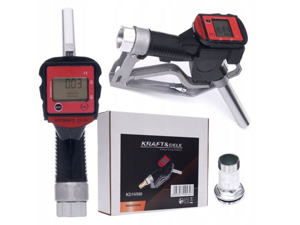 Automatická čerpací palivová pistole Kraft&Dele KD10580 se používá pro přečerpání benzínu, nafty, topného oleje, ropy. Disponuje elektrickým LCD počítadlem, díky kterému snadno změříme množství nalité tekutiny.