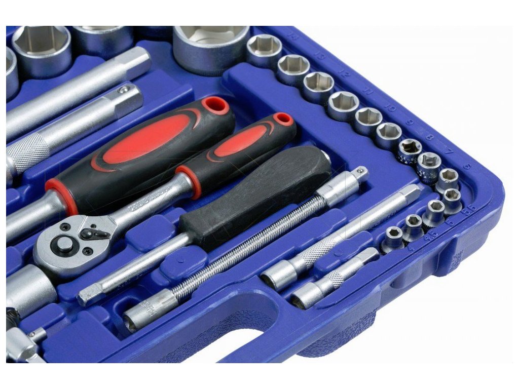 Tato kompletní sada nástrčných klíčů je vyrobena z vysoce kvalitní chrom-vanadiové oceli (CrV), která zajišťuje vysokou odolnost a dlouhou životnost. Praktické uspořádání v pevně uzavíratelném kufru umožňuje snadné přenášení a skladování.