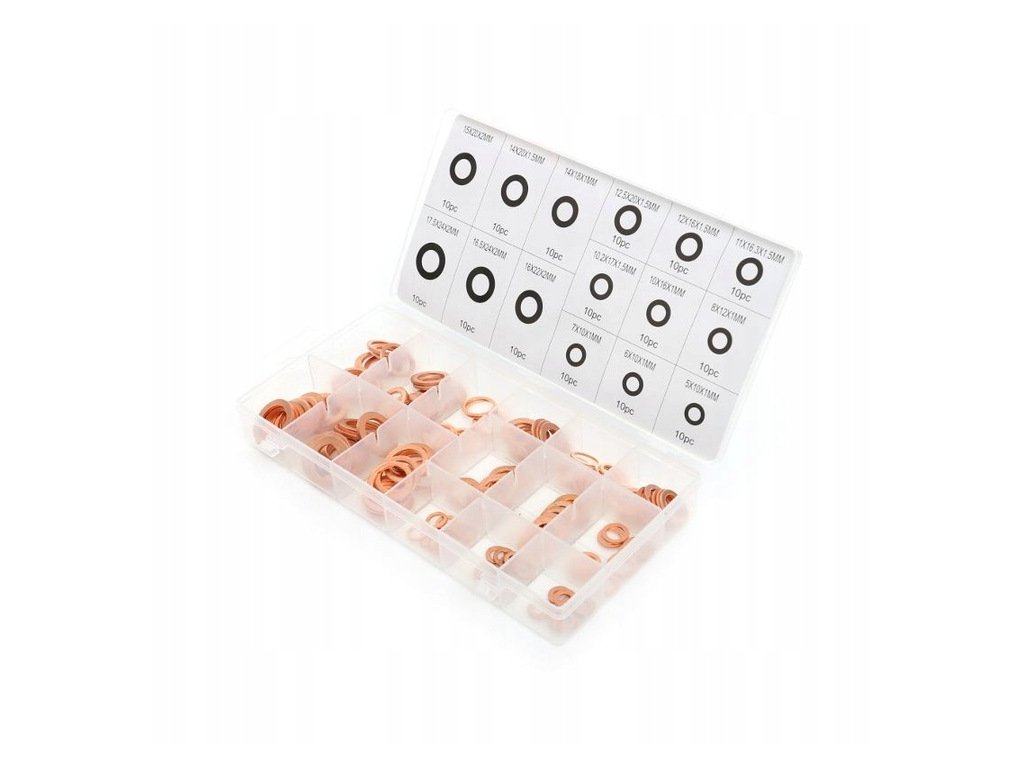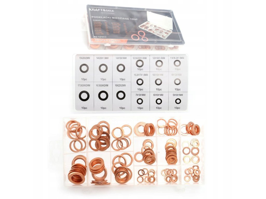 Sada měděných podložek KRAFT&DELE KD10503 obsahuje 150 kusů těsnicích podložek v 15 oblíbených velikostech . Tyto podložky jsou ideální pro olejové, vodní, palivové a hydraulické systémy . Díky vysoké tepelné odolnosti a odolnosti vůči korozi jsou vhodné pro automobilový průmysl, strojírenství, vodoinstalace a elektrotechniku .