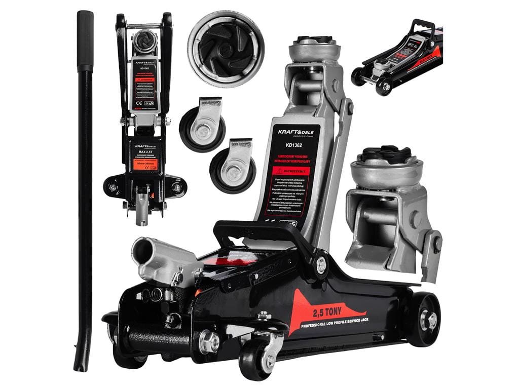 Hydraulický pojízdný zvedák KRAFT&DELE KD1362 s nosností 2,5 tuny je ideální pro servisní práce na osobních a nižších sportovních vozech. Díky nízkému profilu se snadno vejde pod vozy se sníženým podvozkem a jeho robustní konstrukce zajišťuje bezpečnost a dlouhou životnost při každodenním používání.