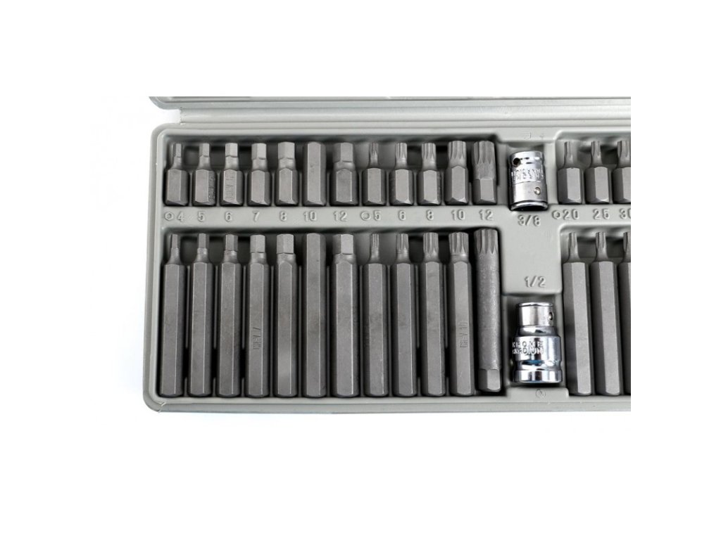 Profesionální sada TORX a bitů, která se používá ke šroubování speciálních šroubů, jako jsou: šestihran, torx, drážka. Odolnost, perfektní zpracování, dokonalé materiály a vysoce kvalitní ocel jsou technické vlastnosti produktů KRAFT&DELE. Rozmanitost bitů poskytuje schopnost provádět mnoho prací ve specializovaných strojních a automobilových dílnách. Špičky mají dvě délky 30 a 75 mm, namontované v šestihranném držáku 10 mm, přizpůsobené pro práci s ráčnou 1/2 "a 3/8".