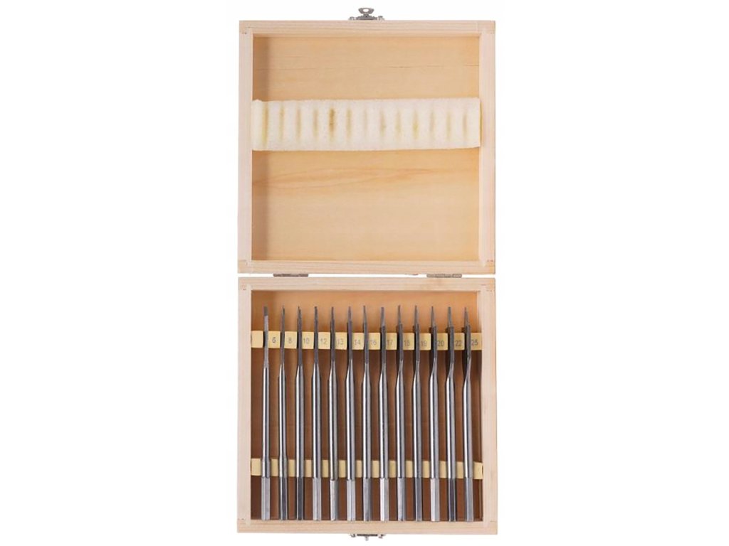 - Pohodlí: Kompaktní dřevěná krabička udržuje všechny vrtáky přehledně na jednom místě.