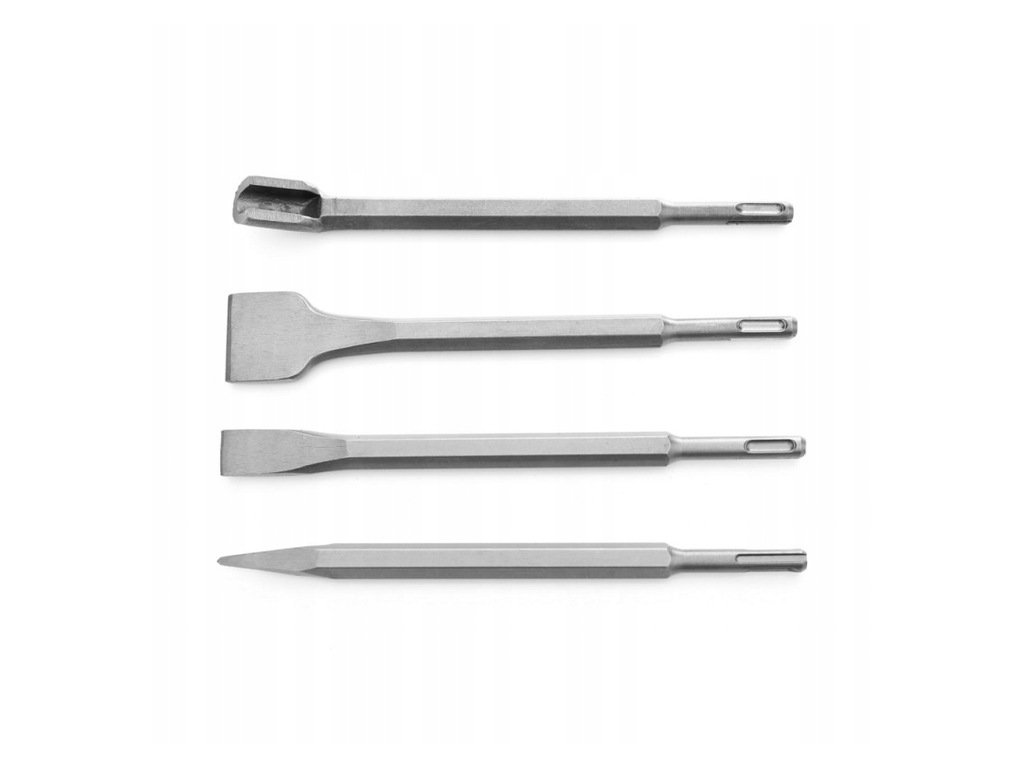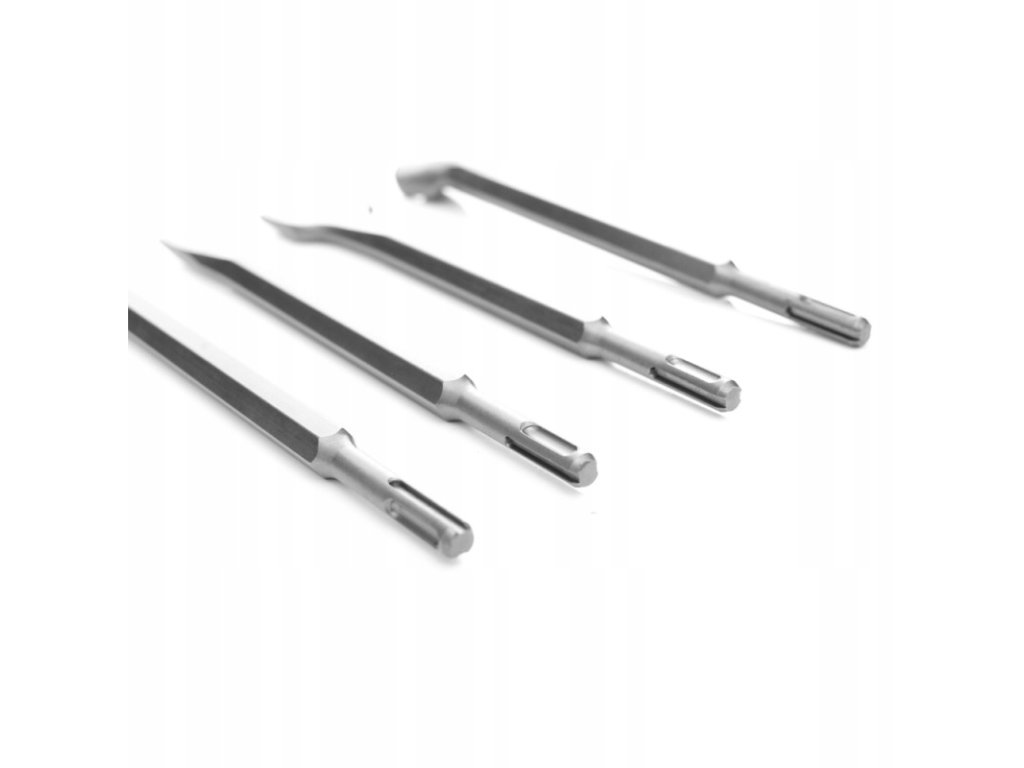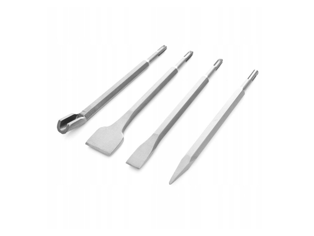 - Všestrannost: Sada obsahuje čtyři různé typy sekáčů, které umožňují provádět různé úkoly při práci s tvrdými materiály.