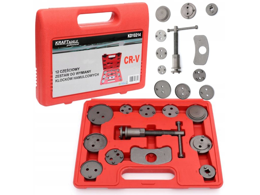Stlačovák brzdových pístů KD10214 od značky KRAFT&DELE je profesionální sada nástrojů navržená pro snadnou a bezpečnou demontáž a instalaci brzdových pístů při výměně brzdových destiček. Tato sada obsahuje 12 kusů nástrojů, které jsou vhodné pro práci s různými typy brzdových systémů, včetně předních i zadních brzd.