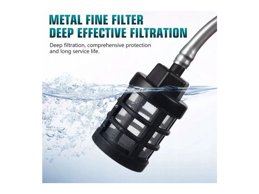 - Filtr pro čistou vodu – ochrana proti nečistotám z nádrží či sudů